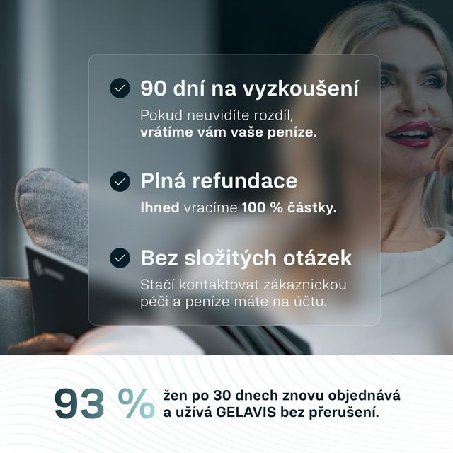 Vyzkoušejte GELAVIS po dobu 90 dní. Pokud nebudete s výsledky spokojeni, vrátíme vám peníze za celý nákup.